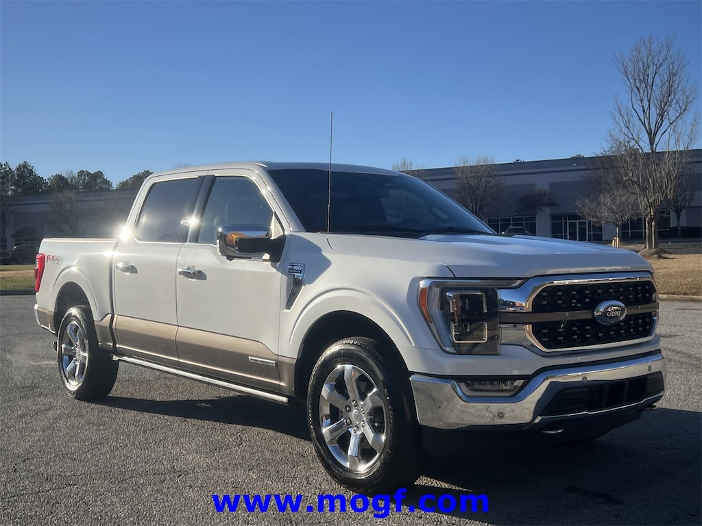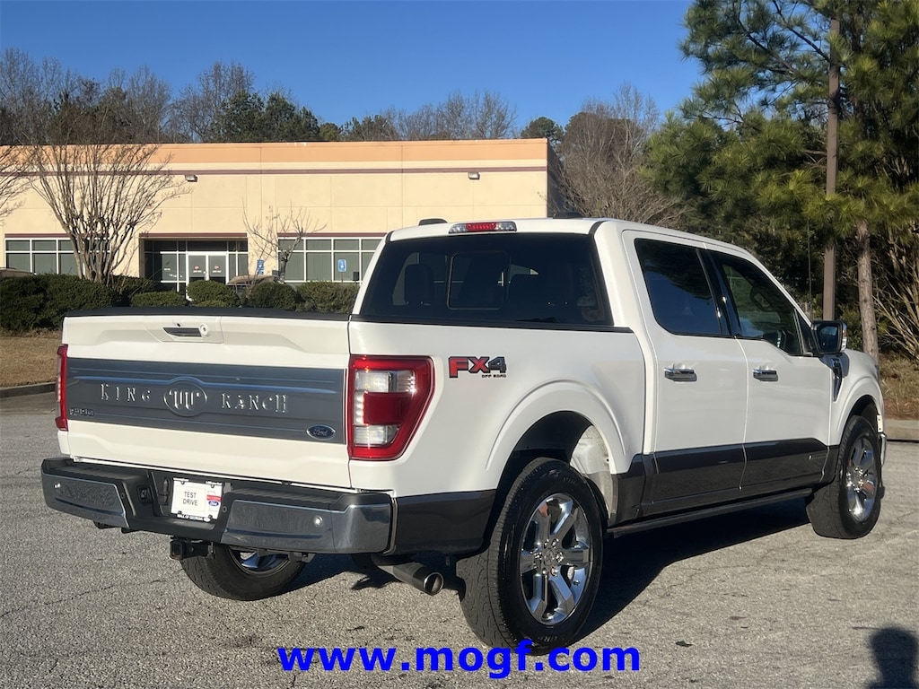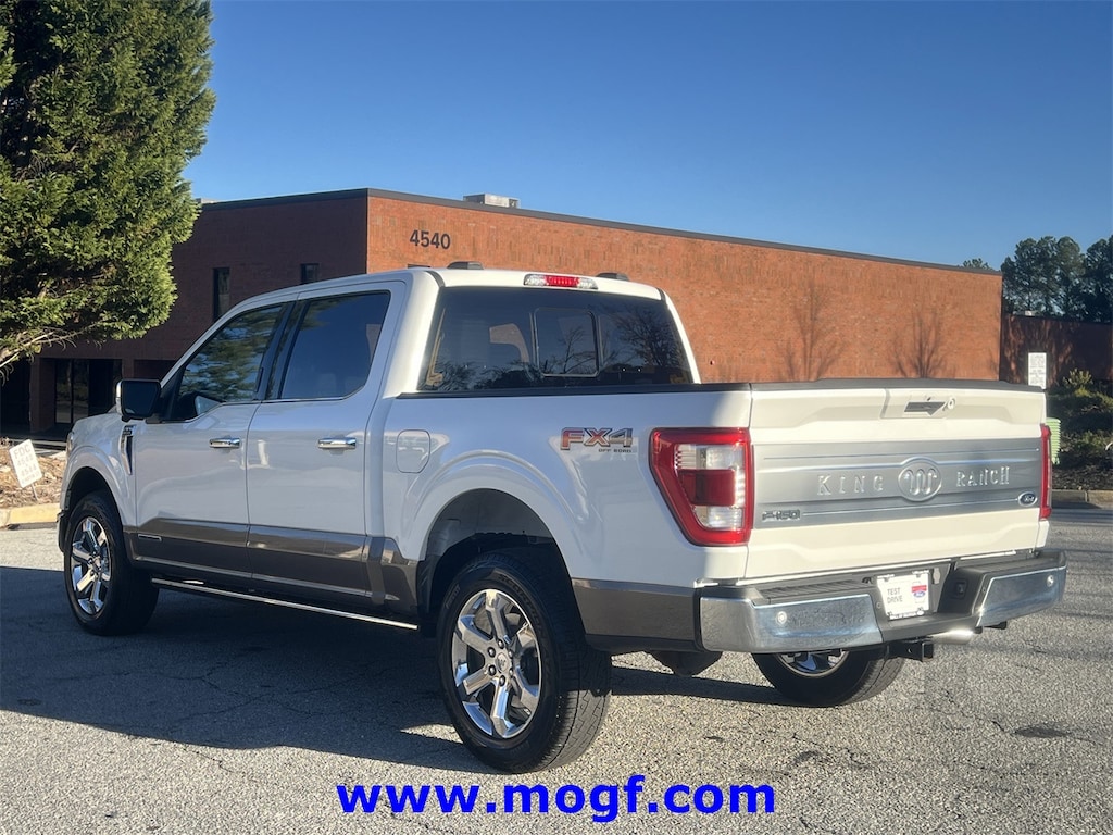 ** ALLOY WHEELS **, ** RUNNING BOARDS **, ** FORD CERTIFIED **, ** NAVIGATION / NAV / NAVI / GPS **, ** CLEAN CAR FAX **, ** SUNROOF / MOONROOF **, ** ONE OWNER **, **LEATHER**, F-150 King Ranch, 4D SuperCrew, 3.5L PowerBoost Full-Hybrid V6, 10-Speed Automatic, 4WD, Star White Metallic Tri-Coat, Java w/King Ranch Leather Bucket Seats, 4x4 FX4 Off-Road Bodyside Decal, 8 Speakers, AM/FM radio: SiriusXM with 360L, Auto High-beam Headlights, Automatic temperature control, Bed Utility Package, BoxLink, Brake assist, Bright Belt Moldings, Chrome Door Handles w/Body-Color Strap, Chrome Skull Caps on Exterior Mirrors, Class IV Trailer Hitch Receiver, Electronic Locking w/3.31 Axle Ratio, Electronic Stability Control, Equipment Group 601A High, Extended Range 36 Gallon Fuel Tank, Exterior Parking Camera Rear, Fully automatic headlights, FX4 Off-Road Package, Garage door transmitter, Heated door mirrors, Heated front seats, Heated rear seats, Hill Descent Control, Integrated Trailer Brake Controller, King Ranch Chrome Appearance Package, LED Box Lighting, LED Sideview Mirror Spotlights, Low tire pressure warning, Max Trailer Tow Package, Memory seat, Monotube Rear Shocks, Multi-Contour Driver & Passenger Seats, Navigation system: Connected Navigation, Off-Road Tuned Front Shock Absorbers, Pedal memory, Power Tailgate, Power-Deployable Running Boards, Pro Trailer Backup Assist & Pro Trailer Hitch Assist, Radio data system, Radio: B&O Sound System by Bang & Olufsen, Radio: B&O Unleashed Sound System by Bang & Olufsen, Rain sensing wipers, Rock Crawl Mode, Security system, Steering Wheel Heat Removal (DISC), Steering wheel memory, Steering wheel mounted audio controls, SYNC 4 w/Enhanced Voice Recognition, Tailgate Step w/Tailgate Work Surface, Traction control, Tray Style Floor Liner, Ventilated front seats, Wheels: 20" Chrome-Like PVD. CARFAX One-Owner. Certified.