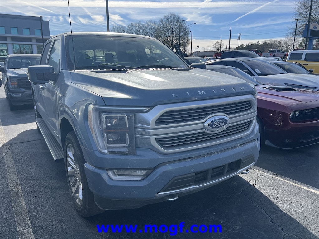 ** ALLOY WHEELS **, ** RUNNING BOARDS **, ** FORD CERTIFIED **, ** NAVIGATION / NAV / NAVI / GPS **, ** SUNROOF / MOONROOF **, ** ONE OWNER **, **LEATHER**, F-150 Limited, 4D SuperCrew, 3.5L PowerBoost Full-Hybrid V6, 10-Speed Automatic, 4WD, Azure Gray Metallic Tri-Coat, Admiral Blue w/Unique Leather Bucket Seats, 22" Polished Aluminum Wheels, Auto High-beam Headlights, Brake assist, Electronic Stability Control, Exterior Parking Camera Rear, Front fog lights, Fully automatic headlights, Low tire pressure warning, Navigation system: Connected Navigation, Power moonroof, Radio data system, Remote keyless entry, Security system, Steering wheel mounted audio controls, Traction control. CARFAX One-Owner. Certified.