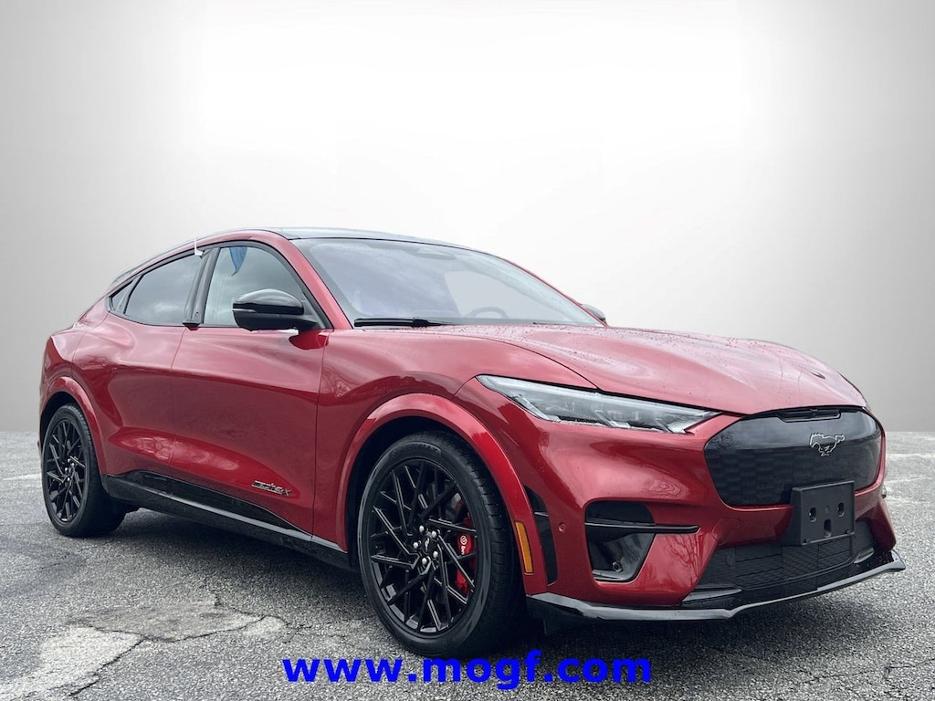 ** ALLOY WHEELS **, ** FORD CERTIFIED **, ** NAVIGATION / NAV / NAVI / GPS **, ** SUNROOF / MOONROOF **, ** ONE OWNER **, **LEATHER**, Mustang Mach-E GT, 4D Sport Utility, Dual Electric Motor, Single-Speed Automatic, AWD, Red Metallic, Gray/Metallic w/Heated Perforated ActiveX Performance Seats, 10 Speakers, 1st & 2nd Row Floor Liners w/o Carpet Mats, Aluminum Applique Instrument Panel w/Unique Design, AM/FM radio: SiriusXM with 360L, AM/FM Stereo, Apple CarPlay/Android Auto, Auto High-beam Headlights, Automatic temperature control, Black Painted Center Wheel Cap, Brake assist, Cargo Floor Liner, Electronic Stability Control, Equipment Group 400A, Exterior Parking Camera Rear, Fully automatic headlights, Garage door transmitter, Grille Pony w/Painted Black Outline, GT Performance Edition, Heated ActiveX Sport Seats, Heated door mirrors, Heated front seats, Heated Perforated ActiveX Performance Seats, Interior Protection Package (Pre-Installed), Low tire pressure warning, Mach-E 4X Badge w/ Painted Black Outline, MagneRide Dampening System, Memory seat, Mustang Nite Pony Package, Navigation system: Connected Navigation, Power Liftgate, Radio data system, Rain sensing wipers, Remote keyless entry, Security system, SiriusXM Radio w/360L, Speed-Sensitive Wipers, Spoiler, Steering wheel mounted audio controls, SYNC 4A w/Enhanced Voice Recognition, Traction control, Wheels: 20" Hi-Gloss Painted Black. CARFAX One-Owner. Certified.