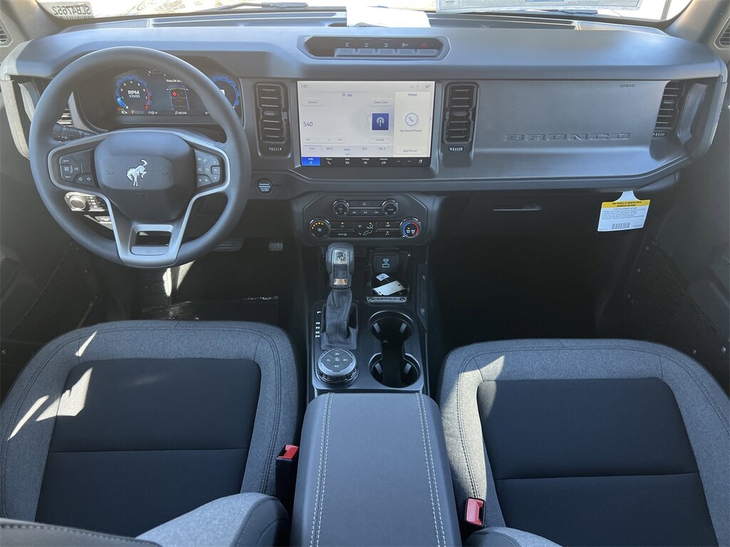 Equipment Group 101A, Sasquatch Package (High Clearance Fender Flares, High Clearance Suspension, Position-Sensitive Bilstein Shock Absorbers, and Wheels: 17" Carbonized Gray Painted Aluminum), 4-Wheel Disc Brakes, 7 Speakers, ABS brakes, Air Conditioning, AM/FM radio: SiriusXM with 360L, AM/FM Stereo, Auto High-beam Headlights, Brake assist, Carbonized Gray Molded-In-Color Hard Top, Cloth Bucket Seats, Compass, Delay-off headlights, Driver door bin, Driver vanity mirror, Dual front impact airbags, Dual front side impact airbags, Electronic Stability Control, Emergency communication system: 911 Assist, Exterior Parking Camera Rear, Front anti-roll bar, Front Bucket Seats, Front Center Armrest, Front reading lights, Front Row Top Panels & Door Storage Bags, Front wheel independent suspension, Fully automatic headlights, Hard Top Sound Deadening Headliner, Heated door mirrors, Illuminated entry, Integrated roll-over protection, Internet access capable: FordPass Connect, Low tire pressure warning, Occupant sensing airbag, Outside temperature display, Overhead airbag, Overhead console, Panic alarm, Passenger door bin, Passenger vanity mirror, Power door mirrors, Power steering, Power windows, Radio data system, Rear-Window Defroster & Washer, Remote keyless entry, Security system, SiriusXM w/360L, Speed control, Split folding rear seat, Steering wheel mounted audio controls, SYNC 4, Tachometer, Telescoping steering wheel, Tilt steering wheel, Traction control, Trip computer, Variably intermittent wipers, and Wheels: 16" Bright Polished Silver-Painted Steel. Price includes: $1000 - SUV Spike Retail Bonus Cash. Exp. 02/16/2026 $2500 - Retail Customer Cash. Exp. 03/31/2026