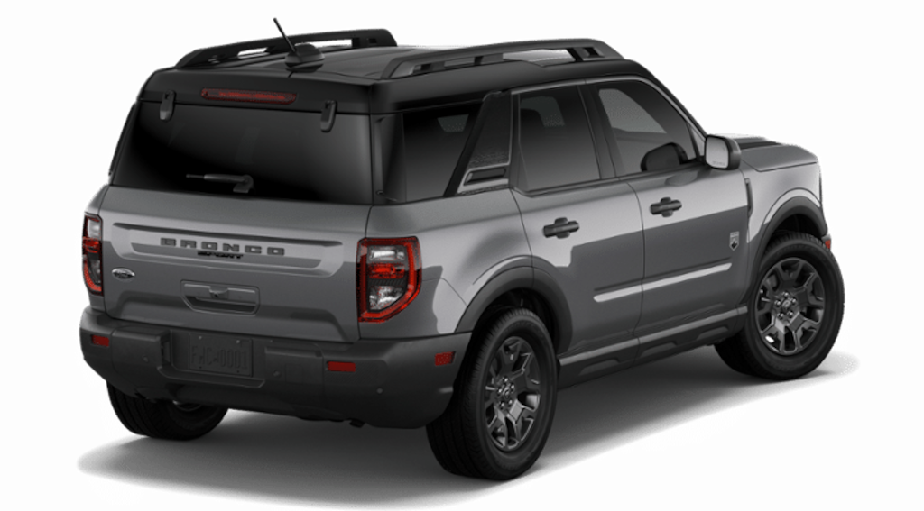 Black Appearance Package (Carbon Black Grille with Black Painted BRONCO Lettering, Cargo Mat, Front and Rear Floor Liners Without Carpet Mats, Front Driver/Passenger Seat Back Map Pockets, Liftgate with Black BRONCO SPORT Lettering, Painted Shadow Black Roof, Premium Trimmed Front Sport Contour Bucket Seats, and Wheels: 17" Matte Black-Painted Aluminum), Convenience Package (Heated 8-Way Power Driver's Seat, LED Fog Lamps, and Premium Wrapped Steering Wheel), Equipment Group 200A Standard Package (AM/FM Stereo, Cloth with Easy-to-Clean Front Bucket Seats, SiriusXM with 360L, SYNC 4 with Enhanced Voice Recognition, and Wheels: 17" Carbonized Gray Painted Aluminum), Ford Connectivity Package (1-Year Included), Internet access capable: 5G Modem - Ford Connectivity Package, 4-Wheel Disc Brakes, 6 Speakers, ABS brakes, Air Conditioning, Alloy wheels, AM/FM radio: SiriusXM with 360L, Apple CarPlay/Android Auto, Auto High-beam Headlights, Automatic temperature control, Brake assist, Cargo Management System (Shelf/Divider/Table), Compass, Delay-off headlights, Driver door bin, Driver vanity mirror, Dual front impact airbags, Dual front side impact airbags, Electronic Stability Control, Emergency communication system: SYNC 4 911 Assist, Exterior Parking Camera Rear, Four wheel independent suspension, Front anti-roll bar, Front Bucket Seats, Front Center Armrest, Front reading lights, Fully automatic headlights, Heated door mirrors, Illuminated entry, Knee airbag, Low tire pressure warning, Occupant sensing airbag, Outside temperature display, Overhead airbag, Overhead console, Panic alarm, Passenger door bin, Passenger vanity mirror, Power door mirrors, Power Moonroof, Power steering, Power windows, Radio data system, Rear anti-roll bar, Rear Parking Sensors, Rear reading lights, Rear seat center armrest, Rear window defroster, Rear window wiper, Remote keyless entry, Security system, Speed control, Speed-sensing steering, Speed-Sensitive Wipers, Split folding rear seat, Steering wheel mounted audio controls, Tachometer, Telescoping steering wheel, Tilt steering wheel, Traction control, Trip computer, and Variably intermittent wipers.