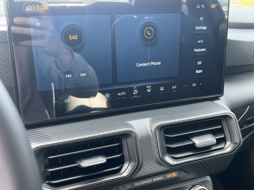 1st Row Carpeted Black Floor Mats, 4-Wheel Disc Brakes, ABS brakes, Air Conditioning, Alloy wheels, AM/FM Stereo, Auto High-beam Headlights, Automatic temperature control, Brake assist, Bumpers: body-color, Compass, Delay-off headlights, Driver door bin, Driver vanity mirror, Dual front impact airbags, Dual front side impact airbags, Electronic Stability Control, Emergency communication system: 911 Assist, Exterior Parking Camera Rear, Four wheel independent suspension, Front anti-roll bar, Front Bucket Seats, Front Center Armrest, Front dual zone A/C, Front reading lights, Fully automatic headlights, Illuminated entry, Internet access capable: FordPass Connect, Knee airbag, Leather Shift Knob, Low tire pressure warning, Occupant sensing airbag, Outside temperature display, Overhead airbag, Overhead console, Panic alarm, Passenger door bin, Passenger vanity mirror, Power door mirrors, Power steering, Power windows, Radio data system, Rain sensing wipers, Rear anti-roll bar, Rear Parking Sensors, Rear window defroster, Remote keyless entry, Speed control, Speed-sensing steering, Speed-Sensitive Wipers, Split folding rear seat, Sport steering wheel, Steering wheel mounted audio controls, SYNC 4, Tachometer, Telescoping steering wheel, Tilt steering wheel, Traction control, Trip computer, Variably intermittent wipers, Voltmeter, and Wheels: 18" x 8" Painted Shadow Silver Cast Alum.