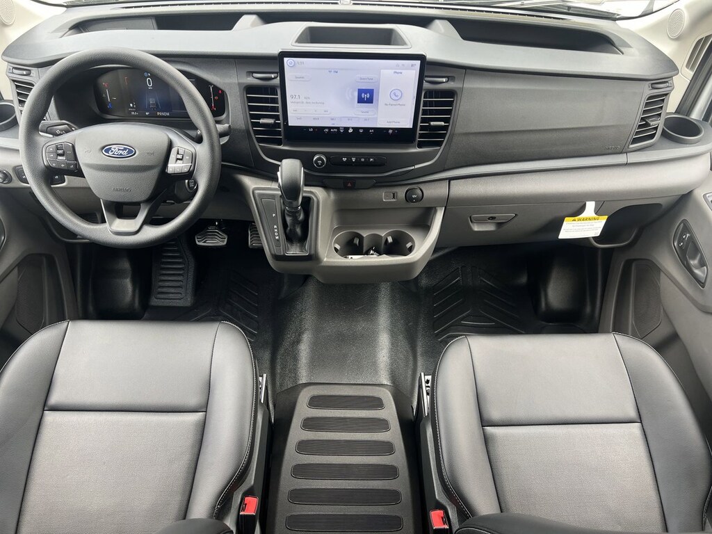 Ford Connectivity Package (1-Year Included), Load Area Protection Package (Front and Rear Vinyl Floor Covering), Order Code 101A (AM/FM Stereo, Dark Palazzo Gray Vinyl Bucket Seats, SYNC 4, Vinyl Front Bucket Seats, and Wheels: 16" Silver Steel with Black Hubcap), 2 Additional Keys (4 Total), 4 Speakers, 4-Wheel Disc Brakes, ABS brakes, Air Conditioning, AM/FM radio, Apple CarPlay/Android Auto, Auto High-beam Headlights, Brake assist, Delay-off headlights, Driver door bin, Driver's Seat Mounted Armrest, Dual AGM Batteries (70 Amp-Hr Each), Dual front impact airbags, Dual front side impact airbags, Electronic Stability Control, Emergency communication system: 911 Assist, Exterior Parking Camera Rear, Fixed Rear Cargo Door Glass, Front anti-roll bar, Front Bucket Seats, Front License Plate Bracket, Front Overhead Shelf, Front reading lights, Front wheel independent suspension, Fully automatic headlights, Illuminated entry, Long-Arm Manual-Folding Power Adjusting Mirrors, Low tire pressure warning, Midship Extended Range Fuel Tank (31 Gallons), Navigation system: Connected Navigation, Occupant sensing airbag, Overhead airbag, Panic alarm, Passenger cancellable airbag, Passenger door bin, Power door mirrors, Power steering, Power windows, Privacy Glass, Pro Power Onboard - 400W, Rain sensing wipers, Rear-Window Defroster, Rearview Mirror, Remote keyless entry, Speed control, Steering wheel mounted audio controls, Tachometer, Telescoping steering wheel, Tilt steering wheel, Traction control, and Variably intermittent wipers.
