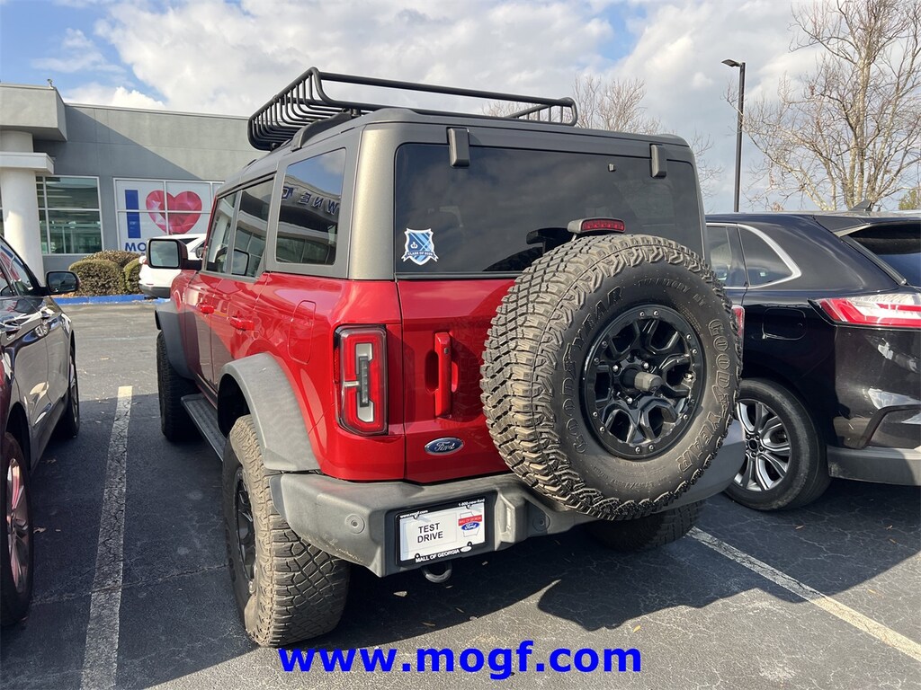 ** ALLOY WHEELS **, ** CLEAN CAR FAX **, **LEATHER**, Bronco Wildtrak, 4D Sport Utility, 2.7L EcoBoost V6, 10-Speed Automatic, 4WD, Rapid Red Metallic Tinted Clearcoat, Medium Sandstone w/Black Onyx w/Heated Leather-Trimmed/Vinyl Bucket Seats, 12" LCD Capacitive Touchscreen w/Swipe Capability, 2 Smart Charging USB Ports In Dashboard, 360-Degree Camera, 6 Speakers, Adaptive Cruise Control, Additional Sound Deadening, AM/FM radio: SiriusXM with 360L, AM/FM Stereo, Auto High-beam Headlights, Brake assist, Connected Built-In Navigation, Electronic Stability Control, Equipment Group 354A Lux Package, Evasive Steering Assist, Exterior Parking Camera Rear, Forward Sensing System, Fully automatic headlights, Heated door mirrors, Heated Steering Wheel, Information on Demand Panel, Low tire pressure warning, Radio data system, Radio: B&O Sound System by Bang & Olufsen, Remote keyless entry, Security system, Sideview Mirrors, SiriusXM Radio w/360L, Steering wheel mounted audio controls, SYNC 4, Universal Garage Door Opener, Wheels: 17" Black High Gloss-Painted Aluminum, Wireless Charging Pad.