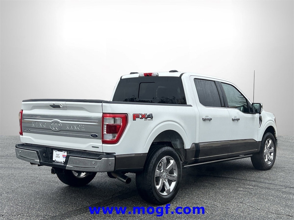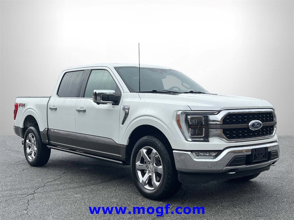 ** ALLOY WHEELS **, ** NAVIGATION / NAV / NAVI / GPS **, ** LOCAL TRADE **, ** SUNROOF / MOONROOF **, **LEATHER**, F-150 King Ranch, 4D SuperCrew, 3.5L V6 EcoBoost, 10-Speed Automatic, 4WD, Star White Metallic Tri-Coat, Java w/King Ranch Leather Bucket Seats, 20" Machined-Aluminum Wheels, 360 Degree Camera, 4x4 FX4 Off-Road Bodyside Decal, 8 Speakers, Active Park Assist 2.0, AM/FM radio: SiriusXM with 360L, Automatic temperature control, Bed Utility Package, BlueCruise, BoxLink, Brake assist, Bright Belt Moldings, Chrome Door Handles w/Body-Color Strap, Chrome Skull Caps on Exterior Mirrors, Class IV Trailer Hitch Receiver, Electronic Locking w/3.31 Axle Ratio, Electronic Stability Control, Equipment Group 601A High, Extended Range 36 Gallon Fuel Tank, Exterior Parking Camera Rear, Ford Co-Pilot360 Active 2.0, Front fog lights, Fully automatic headlights, FX4 Off-Road Package, Garage door transmitter, GVWR: 7,050 lbs Payload Package, Heated door mirrors, Heated front seats, Heated rear seats, Hill Descent Control, Integrated Trailer Brake Controller, King Ranch Chrome Appearance Package, LED Box Lighting, Low tire pressure warning, Memory seat, Monotube Rear Shocks, Multi-Contour Driver & Passenger Seats, Navigation system: Connected Navigation, Off-Road Tuned Front Shock Absorbers, Pedal memory, Power Tailgate, Power-Deployable Running Boards, Pro Trailer Backup Assist, Radio data system, Radio: B&O Sound System by Bang & Olufsen, Radio: B&O Unleashed Sound System by Bang & Olufsen, Rain sensing wipers, Remote keyless entry, Rock Crawl Mode, Security system, Steering wheel memory, Steering wheel mounted audio controls, SYNC 4 w/Enhanced Voice Recognition, Tailgate Step w/Tailgate Work Surface, Traction control, Trailer Tow Package, Tray Style Floor Liner, Twin Panel Moonroof, Ventilated front seats, Wheels: 20" Chrome-Like PVD.